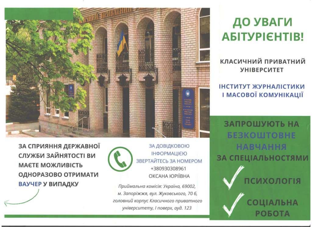 Шановні здобувачі освіти Класичного приватного університету, Фахового коледжу КПУ та Філії КПУ у м. Кременчук
